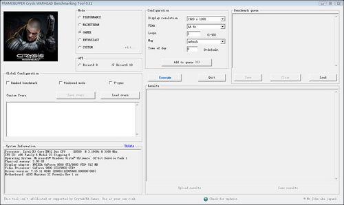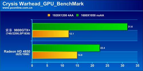 由于Crysis warhead是目前对显卡要求最高的DX10游戏,因此在本次评测中,我们将分辨率锁定在1600x1200 0AA、1920x1200 4AA所有的画面设置都调至高,分辨为开启和关闭AA两组测试。为了避免测试误差,我们使用了目前最新的Benchmark测试。