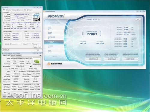 在测试平台上,我们是用了Intel Core 2 Extreme QX9770处理器,可以避免CPU性能成为平台整体性能瓶颈的可能,最大限度表现显卡的极限性能。每个游戏分别选用两种不同的分辨率,以考察不同分辨率下显卡的性能差异。而关于3DMarkVantage的测试,我们打开了NVIDIA的物理加速。