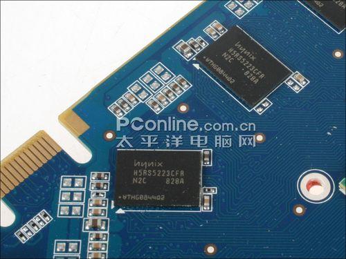 显存是由8颗现代GDDR3颗粒组成512M/256bit显存规格。频率达到2200MHz,相当高的显存频率,应对主流的3D游戏效能更好。