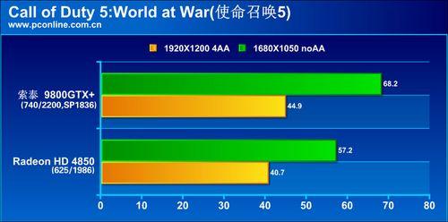 使命召唤5是该系列最新的续作,仍然是一款DX9游戏。我们把所有特效开到最高,分辨率设定为主流的1680x1050 0AA、1920x1200 4AA,能更真实反映用户的应用环境,更好考察双核/四核CPU对游戏性能的影响。