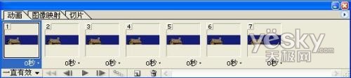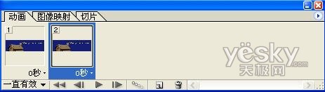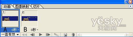在ImageReady中,打开动画调板,将第一帧进行复制,便得到两帧相同的动画。