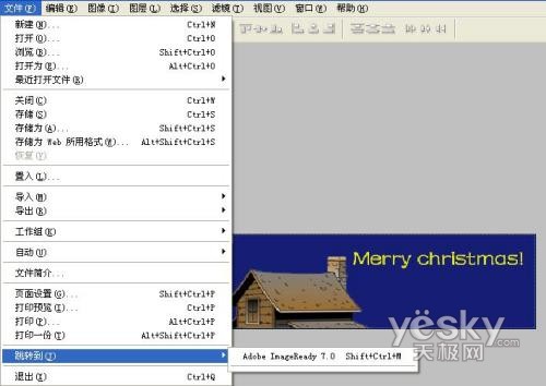 制作完图像后,选择文件-跳转到-ImageReady中,即可打开ImageReady软件相应窗口。