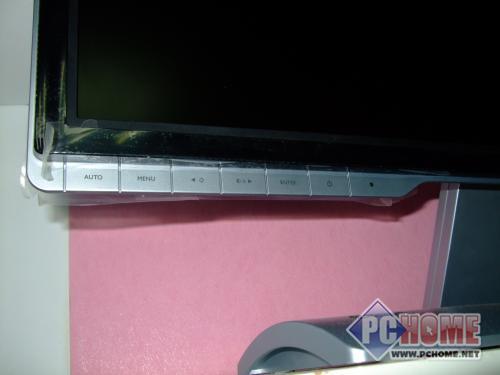 V2400W采用银黑双色搭配,显示器部分采用双层边框设计,黑色钢琴烤漆,再配上亮银色的外框,非常时尚。OSD按键采用银色金属质感,设置在显示器左侧,凸出于机身,体现出特别的美感。显示器支架也采用非对称设计,不过大家不用担心,因为这个底座可以提供非常好的支持能力。