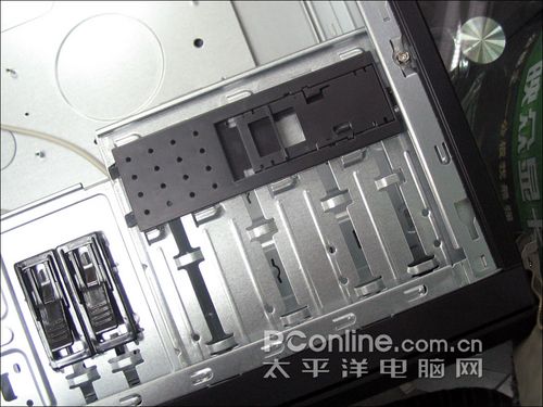 富士康 V150机箱的侧板采用了优质的0.8mm厚镀锌钢板,机箱的主体也采用了非常结实的优质钢板,整体结构简单实用。