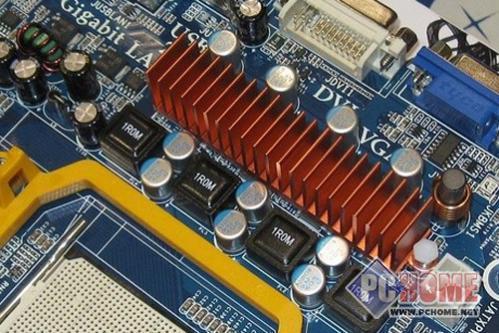 主板采用了5相供电设计,保证了CPU的适度超频能力,以及长时间的稳定运行。MOS部分配备了散热片,并且与热管相连。