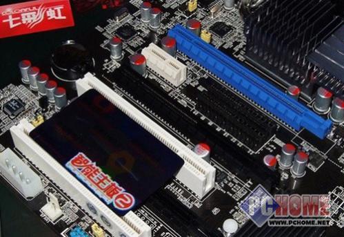 七彩虹 战旗C.A790GX X7主板采用了少见的3条PCI-E显卡插槽设计。最上边一条为全速16X模式,另两条为8X模式,支持ATI Hybrid CrossFire交火技术。