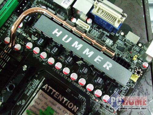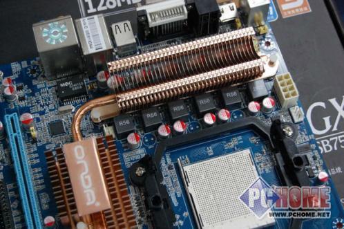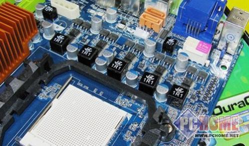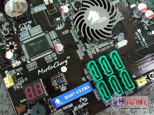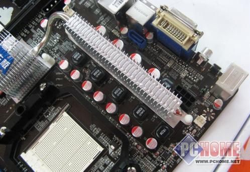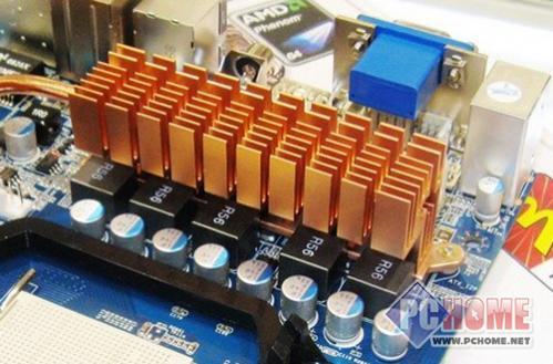 悍马HA07-ULTRA主板采用了5+1相供电设计,保证了CPU的适度超频能力,以及长时间的稳定运行,辅助的额外1相供电为支持AM2+接口处理器提供了基础。MOS部分配备了散热片,并且与热管相连。