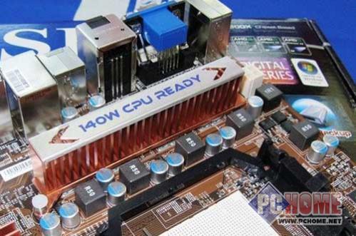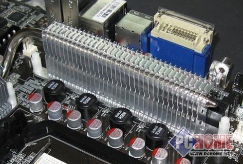 供电部分,采用了”5+1”相的加强型设计,5相用于CPU供电,另外1相用于加强北桥供电。虽然价位上针对中端用户,但是他以往足以应付Phenom 9950等高达140W TDP的高端处理器 。用料方面,采用高品质全封闭电感加上Nichicon固态电容,设计方案堪称奢华。散热部分,辅以大面积鳍片散热方案,从供电用料到散热上打上双保险。