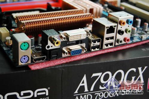 外接口方面则有四个USB接口和一个eSATA接口,为了能够兼容玩家的老设备,键盘和鼠标专用的PS/2接口也被保留着。显示接口方面也是AMD最不吝啬的功能配备,DVI、VGA、HDMI接口一应俱全。