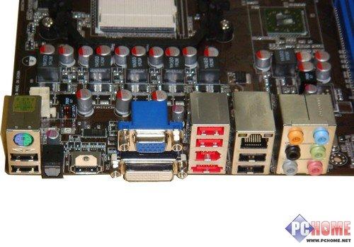 外接口方面,键盘和鼠标专用的PS2接口也被保留着,但是用华硕的特殊技术,两者合二为一,增加了两个USB接口。显示接口方面也是AMD芯片组最不吝啬的功能配备,DVI、VGA、HDMI接口一应俱全。