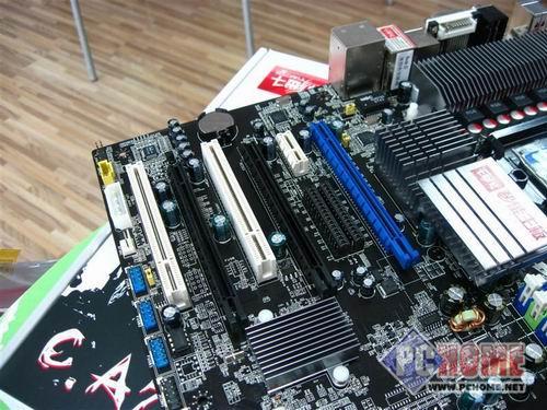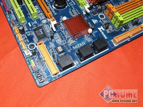南桥方面,延伸出5个SATA接口和一个IDE接口,规划相对紧凑。PCI-E方面,使用三条PCI-E的设计方案,具体用途及使用方式由玩家决定。