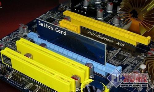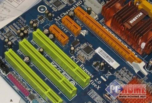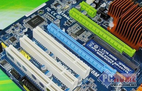 悍马HA07主板提供了双PCI-E显卡插槽,支持双8X的交火模式。转换卡是用来在使用单卡时,保障单卡的全速16x模式。原生支持双卡是790GX产品的一个优势之一,当然还如780G一样能够提供Hybrid Crossfire技术支持。主板板载了ETL8111C芯片,支持千兆网络。板载ALC888音效芯片,提供了8声道HD音频输出。