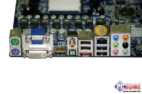映泰TA790GX 128M主板提供HDMI/ DVI/ VGA完整视频输出接口,配备PS2键鼠接口和4个USB2.0,板载Realtek RTL8111C千兆网卡以及6口Realtek ALC888 8+2声道高清音频。