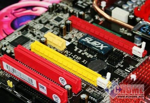 魔剑790GX配备了三条PCIE X16物理插槽,可支持AMD当红的混合交火、双卡交火两大增速模式,未来还可支持AMD 三卡交火并联系统。