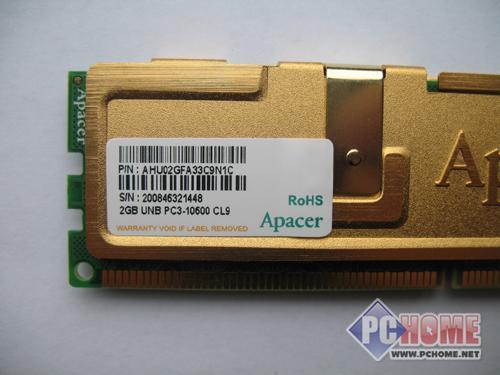 从标签处可以看到,黑豹二代DDR3 1333 2G单条的CL值为9,电压为标准的1.5V,并且标有欧盟的ROHS环保认证,确保了内存的绿色无铅。