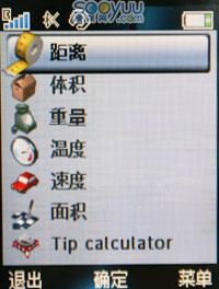 管理器里还有闹钟、日历、任务、便签、秒表、倒计时、计算器等工具,其中还有一个专门控制闪光灯的软件,打开即可作为小电筒使用。在应用程序里,有一个名为Converter的换算器,可以进行距离、体积、重量、温度、速度、面积等多种换算,还有一个名为World Clock的世界时间软件。