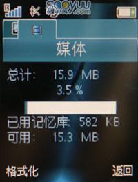 手机内置了浏览器,支持蓝牙博客,可以通过USB、蓝牙、博客分享自己的照片,蓝牙支持A2DP功能。该机具有15.9MB媒体存储空间,可以通过扩展卡最高扩展到4GB。