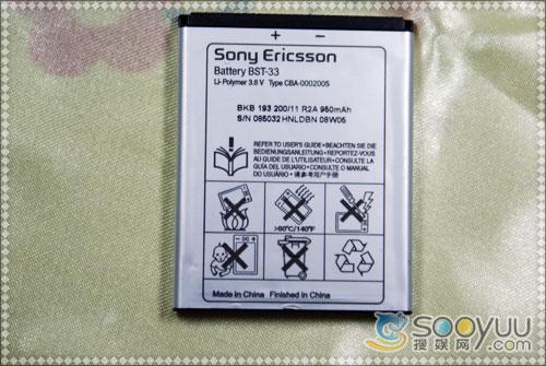 索尼爱立信S302标配了型号为BST-33容量为950mAh的锂离子电池,作为一款中低端拍照手机来说,正常使用情况下基本上待机两天差不多,建议配备一块备用电池使用。