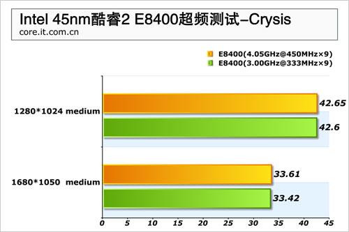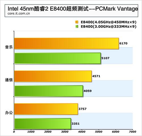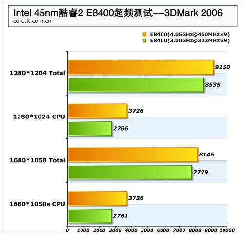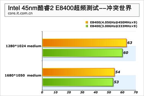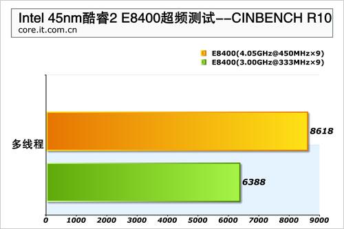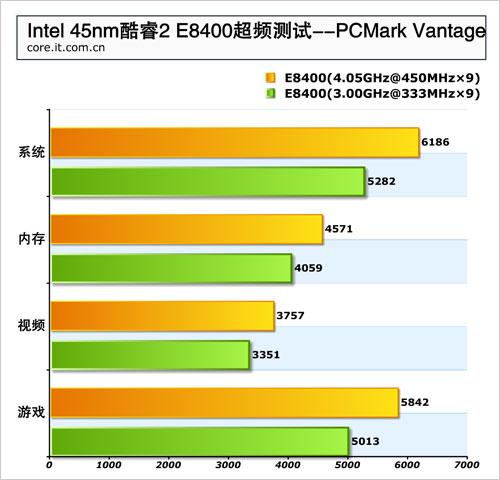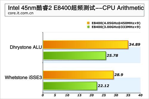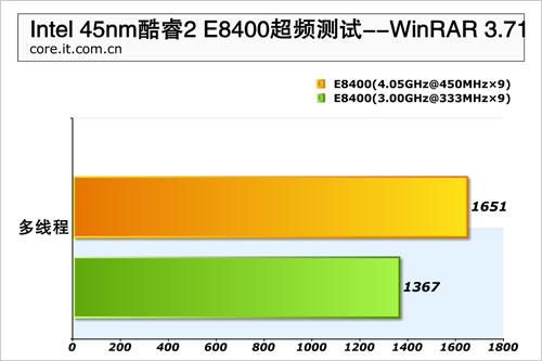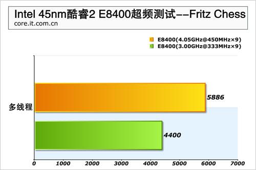 超频带来的效能提升是显而易见的,酷睿2 E8400的性能直逼低频多核处理器。