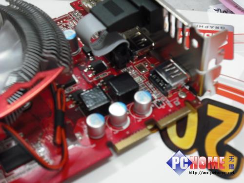 在供电部分,显卡采用了扎实的核心2相与显存1相分离式供电设计,核心部分采用全固态电容和半封闭式电感,绝对保证了显卡的稳定运行。