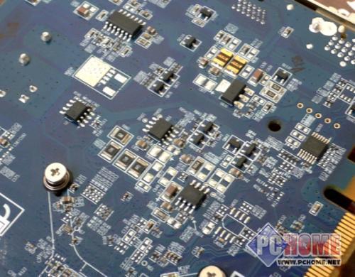 显存使用奇梦达1.4ns GDDR3颗粒,默认频率1400MHz,仍然保留一定的超频空间。普通品牌与一线大厂的差别在PCB背面做工很容易感受出来,纵使仅仅是499元的入门级产品。从PCB背面我们同样可以感受到这款HD4650海外版的精工细作。