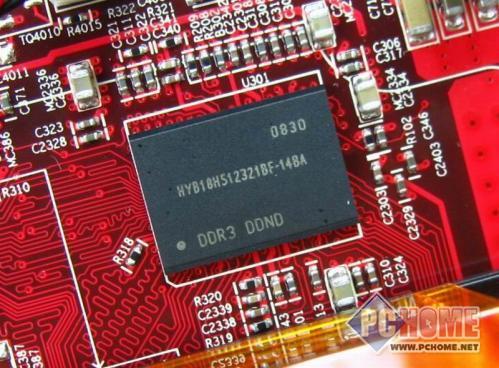 HD4650支持128bit位宽,因此该卡使用了4颗HY原厂GDDR3显存颗粒组成128M/128bit规格,通过HyperMemory技术更可以动态调整至512M大容量显存,满足大屏高分辨的性能需求。显卡默认频率600MHz/1200MHz,得益于强劲的核心规格已经优化的显存使用效率,HD4650的游戏性能在众多同价位产品中是性能最强的。