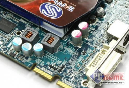 供电部分,蓝宝石HD4670白金版使用100%公版方案,的核心2相+显存1相的独立供电方案,大量固态电容与优质mosfet绝对令人放心。