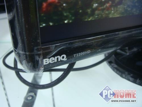 明基T2200HD底座的造型虽然普通,但是烤漆工艺十分耀眼,几乎可以如镜面般反射出物体来。整机的边框也是同样的效果。
