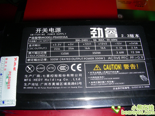 这款电源继承了劲睿家族的精良做工,外壳依旧采用黑色考漆工艺的镀镍外壳,具有500W的额定功率及600W的峰值功率,采用主动式PFC达到PF值90%以上,转换效率极高,因此相当节能。