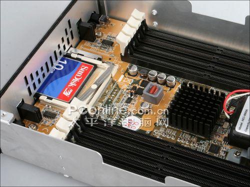 当玩家插入CF卡时,ACARD ANS-9010可以一键自动备份DDR2内存内的数据,将数据自动储存到CF记忆卡中,而在需要数据恢复的时候也可以一键由CF卡恢复数据到DDR2内存上。并且在中间的控制芯片上还有装置有散热片。