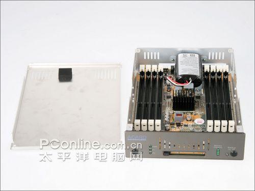 打开ACARD ANS-9010外盖后,可以发现内部提供了8条DIMM的DDR2内存插槽,能同时支持目前市场上的DDR2-400/533/667/800等频率内存,不过根据ACARD表示,不管是使用DDR2-667或是DDR2-800等内存,ANS-9010都只会用DDR2-200MHz的频率来运作,因为除了保持数据的稳定传输之外,基本上这样的频率已经足以满载SATA II信道带宽。