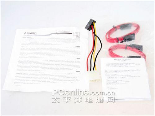 ANS-9010的附件包括快速安装指南1个、内部SATA连接线50CM×2、15pinSATA电源线1个。
