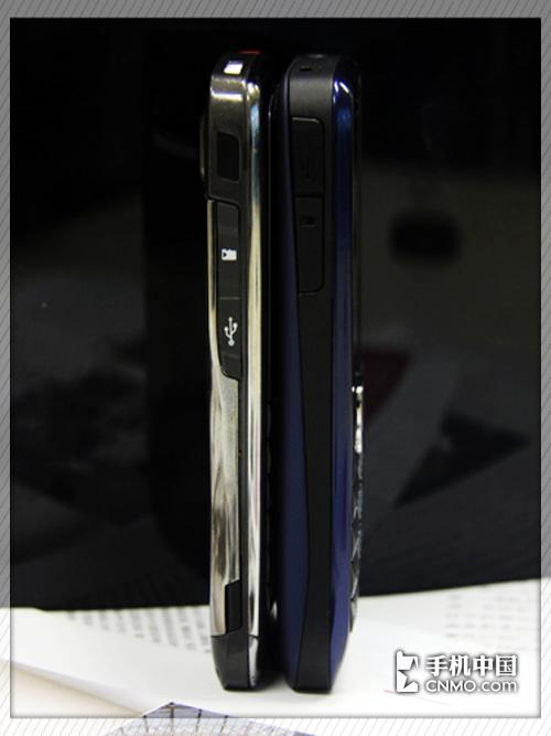 诺基亚E71(左)和诺基亚E63(右)右侧面对比