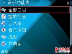虽然E系列是主打商务应用领域的产品,但是E63手机还是内置了多项多媒体功能,包括音乐、视频文件的播放等。内置的音乐播放器可以自动搜索手机以及存储卡当中存储的歌曲文件,通过手机顶部的独立扬声器外放效果不错,不过声音有些偏小。