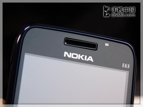 诺基亚E63手机听筒附近还隐藏着一个光线感应器,位于“NOKIA”和“E63”标识中间。