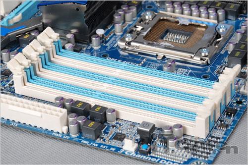作为一款基于英特尔X58芯片组的主板产品,技嘉的这款GA-X58-UD5主板在内存部分同样提供了对于DDR3内存模组的支持,能够支持DDR3-800/1066/1333等多种频率,搭配集成了内存控制器的Core i7处理器可以支持最高容量为12GB的三通道内存系统。