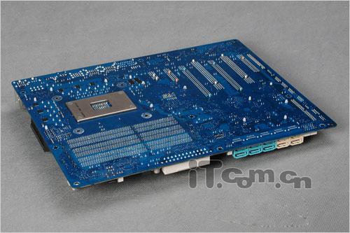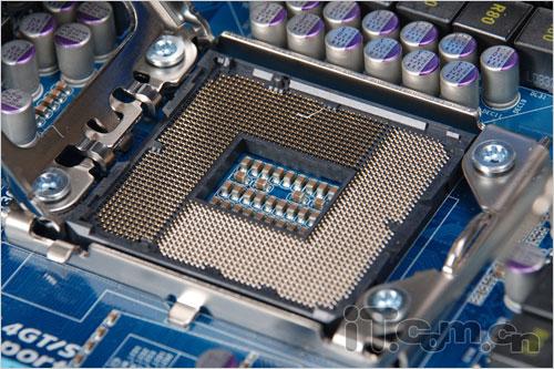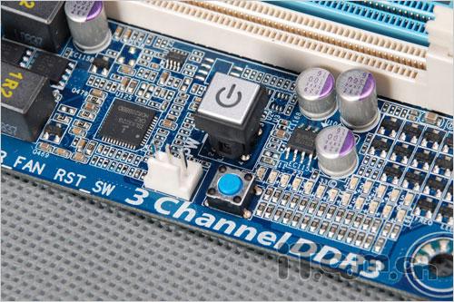 和一般主板产品供电模块位于处理器位置上方不同,技嘉的这款GA-X58-UD5主板的供电模块设计在处理器位置的上方以及右侧,两个部份分别具备6相的供电回路,总共组成了十二相回路的供电设计。