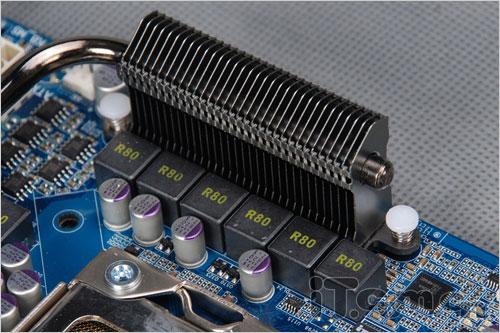 仅仅有纯铜散热片对于主板而言显然是不够的,因此技嘉在这款GA-X58-UD5主板上使用了直径较粗的铜质热管实现不同部位散热片之间的连接,通过一体化的散热方式令散热效果得到进一步的提升,也让主板的超频潜力更加强大。