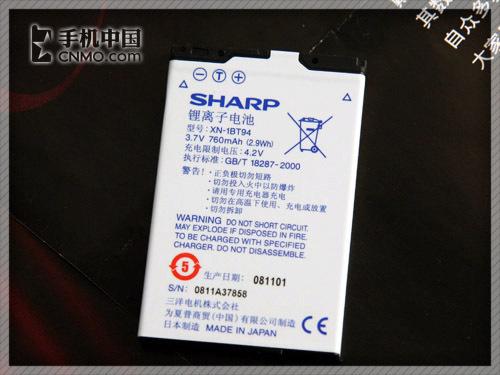 夏普 SH9020C手机随机配备了一块型号为XN-1BT94的锂离子电池,标称容量为760mAh,理论待机时间为290小时。
