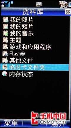 夏普SH9020C手机加入了临时卡文件夹功能,用户可以更加方便的管理存储卡上的文件,浏览方式为分级浏览。