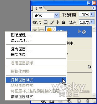 右击糖面图层,选择复制图层样式选项,再选择柄图层,粘贴刚才的图层样式,这样柄也完成了内阴影及斜面与浮雕的图层效果。