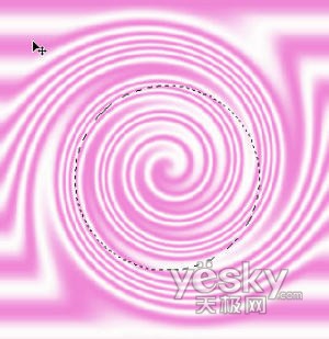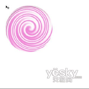 这时,图像中出现了漩涡状的图形。选择椭圆工具,按住Shift键在漩涡中央画一个正圆。再用Ctrl+J快捷键复制图层,便出现了糖面效果。