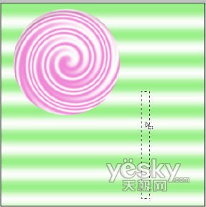 糖面做完后,就要开始做棒棒糖的柄了。新建一个图层,重复制作糖面的过程,将柄制作成绿白相间的颜色并用矩形选区选择。