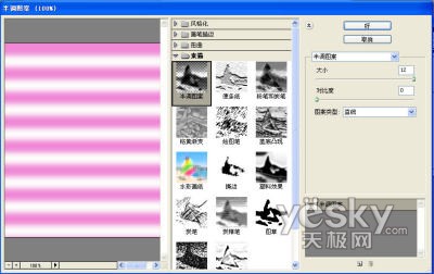 首先,新建一个文件,复制背景图层为背景副本图层。对背景副本图层设置前景色为粉色,背景色味白色。这个是用来做糖面的,也可以根据自己的喜好来设置其他的颜色。接着,选择滤镜-素描-半调图案选项。在出现的对话框中,选择直线型,并设置相应的参数。