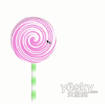 调整糖面及柄的位置到最合适处,合并这两个图层。对新图层再施加一次投影的图层样式,这样,棒棒糖便更加得有层次感了。