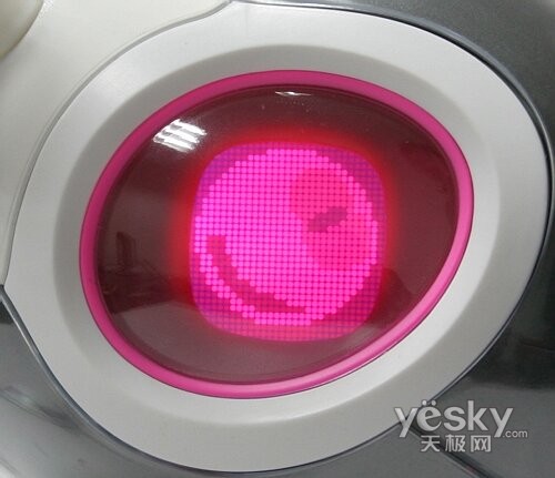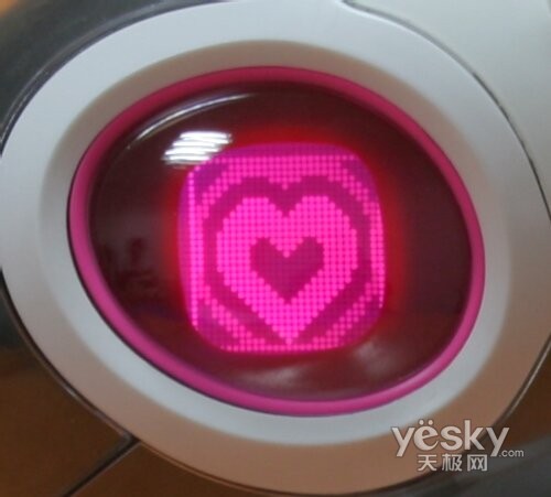 Mio的眼睛能显示出100多种眼神,不同的眼神图案都代表了不同的情感,有开心的、郁闷的、生气、寂寞、悲伤、饥饿、疲惫、甚至生病等,这些图案的含义在说明书都有很详细的说明,各位宠物主人可自己仔细查阅。而除了以上所说之外,Mio的情感表达方式还包括一些组合动作,譬如同时触摸Mio的鼻子和背部又会有不同的动作,Mio总共有三个感应器,分别分布在下巴、头部、背部三个部分,而触动耳朵、尾巴等关节也能触发不同的动作。
