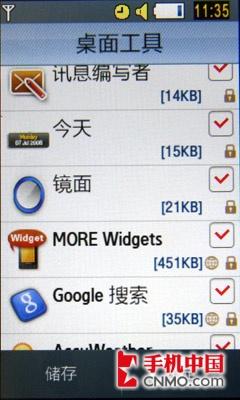 而且M8800手机的工具条内软件的数量要比之前其他三星手机多很多,比较有代表性的软件是天气预报、常用联系人和镜面功能。镜面功能启动以后,会利用手机前置摄像头进行拍摄,从而达到镜子的效果。