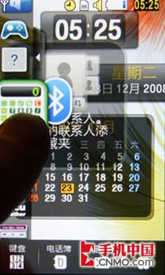 三星M8800的开机速度挺快,只需20秒就能完成,开机后能看到的TouchWiz全触控界面,TouchWiz技术可以实现动态图标的拖放和界面平滑切换。M8800屏幕的左侧具有和VISTA类似的工具栏,可以用手指随意将栏中的工具拖到桌面上使用。拖动图标时屏幕会有相应的动态效果,拖动到桌面上的工具可以自动放大,以便于操作。