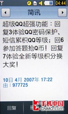三星M8800手机内置了多款JAVA软件,但是我们试图测试安装一些新的软件,比如:UCWEB 6.0、QQ2008等时却出现了手机不读卡的现象,初步怀疑可能是系统不稳定造成的。