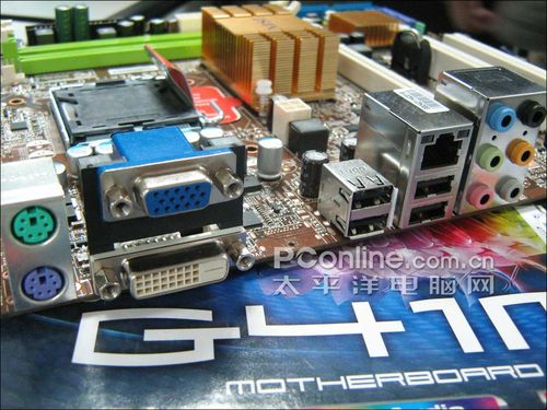 I/O接口部分,提供了DVI接口和VGA显示接口,但没有提供HDMI接口,对于高清用户来说有些遗憾,但主板的价格非常接近入门级玩家和办公用户的消费水平,是办公用户和入门级玩家的首选平台。